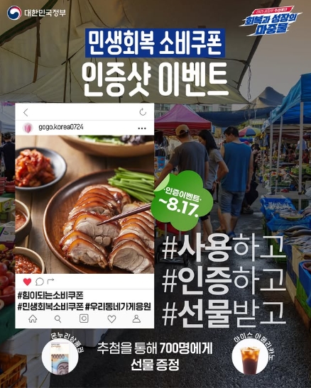 7월 21일부터 8월 17일까지 진행되는 민생회복 소비쿠폰 후기 이벤트는 소비쿠폰을 사용한 사진과 간단한 후기를 SNS에 업로드하면, 추첨을 통해 선물을 받을 수 있는 참여형 이벤트입니다.