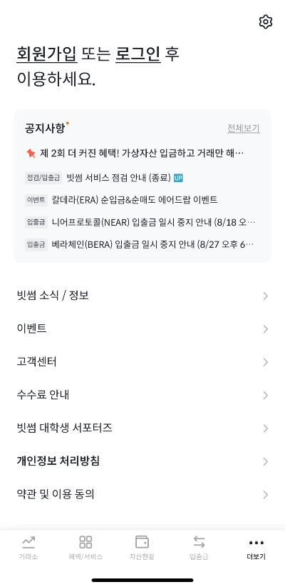 1. 앱스토어나 구글플레이에서 빗썸 앱 설치