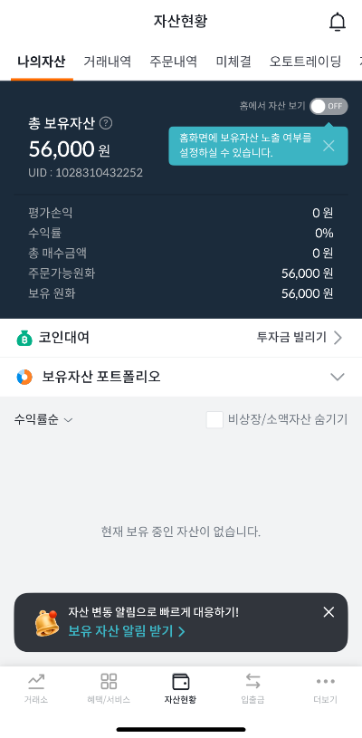 이벤트로 받은 금액은 출금을 하셔도 되고, 코인에 평소 관심이 있으셨다면 연습삼아 거래해보셔도 될 것 같습니다.